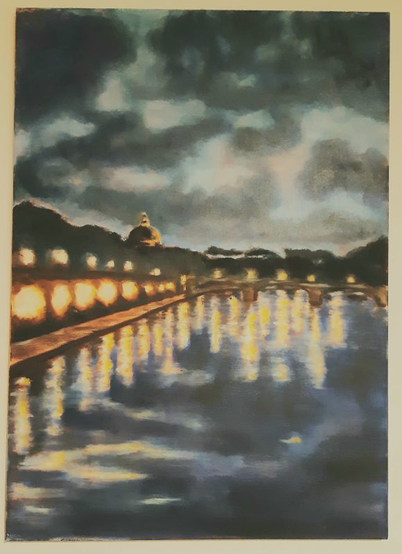 I COLORI DELLA MIA TERRA Concorso Internazionale di Pittura / SENIOR GalleriaCarica la tua operaRegole e premiLe tue immaginiAccessoLa votazione inizio tra: 125 giorni 2 oreTitolo: AprileAutore: Maria Laura D'AnnaVoti: 0Views: 51Descrizione: Il percorso del fiume attraverso la citta' una sera di aprile, 70x50, olio su tela, 2018 Copy Share to Care!